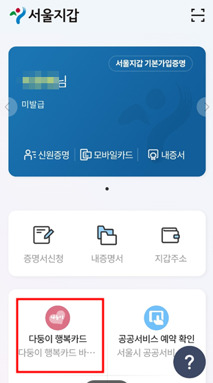 - 앱카드의 경우 '서울지갑' 어플에서 다운로드 후 '다둥이 행복카드'에서 확인 가능